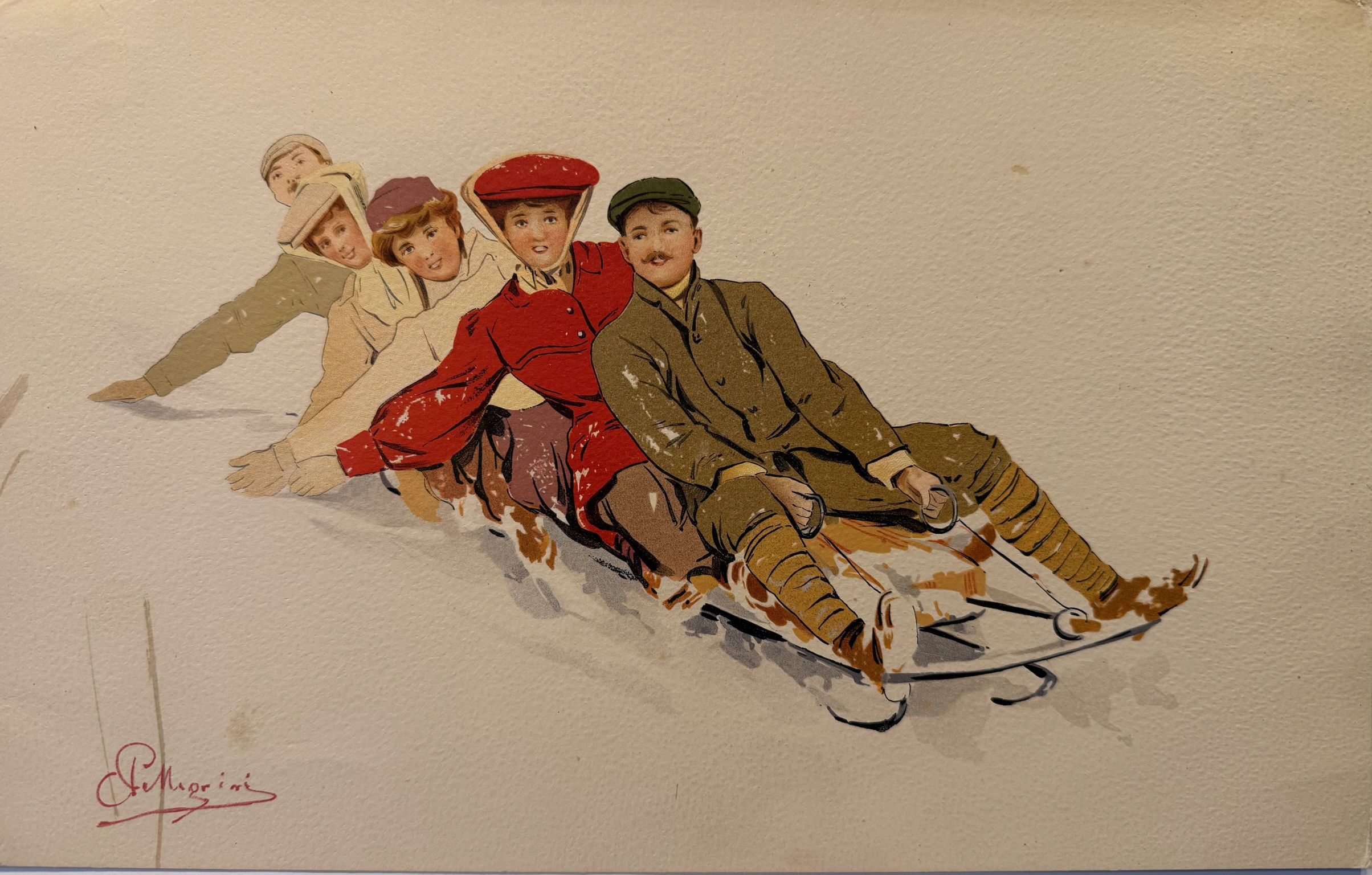 représentant une scène de luge