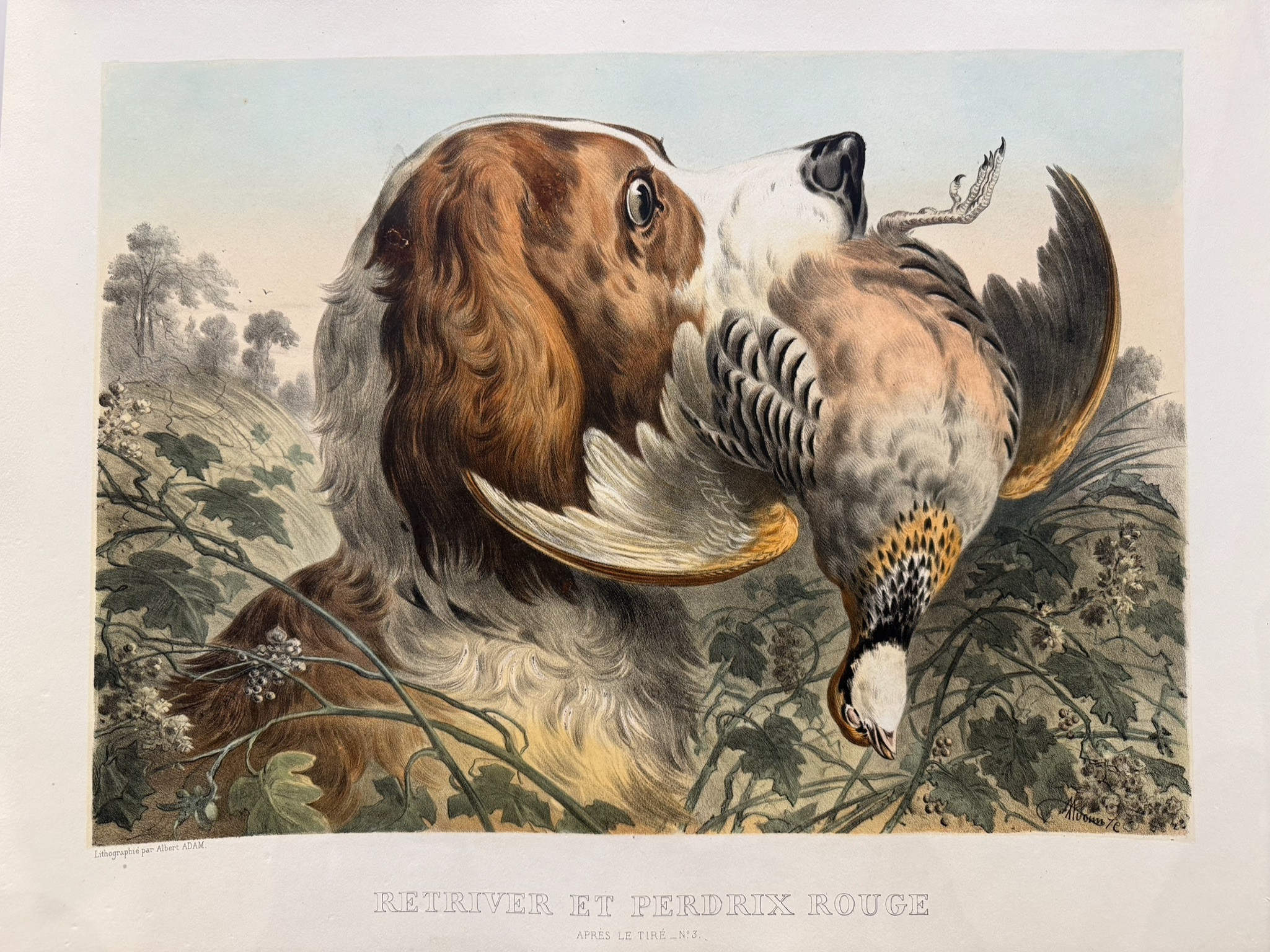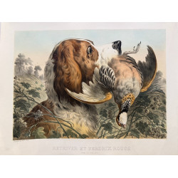 Retriever et perdrix rouge, Albert Adam, 1876.