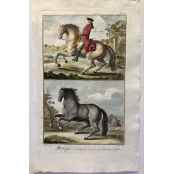 Jolie gravure équestre du XVIII ème Siècle représentant les allures et figures equestres,