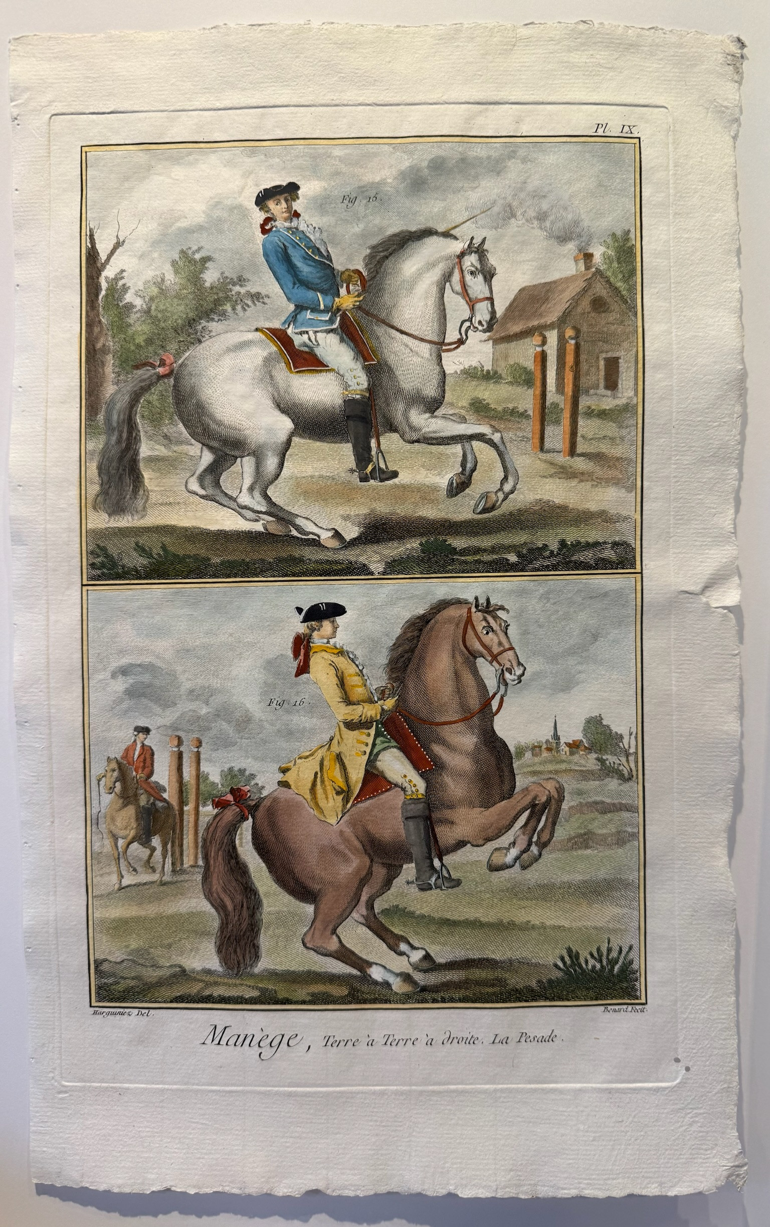 Jolie gravure équestre du XVIII ème Siècle représentant les allures et figures equestres,
