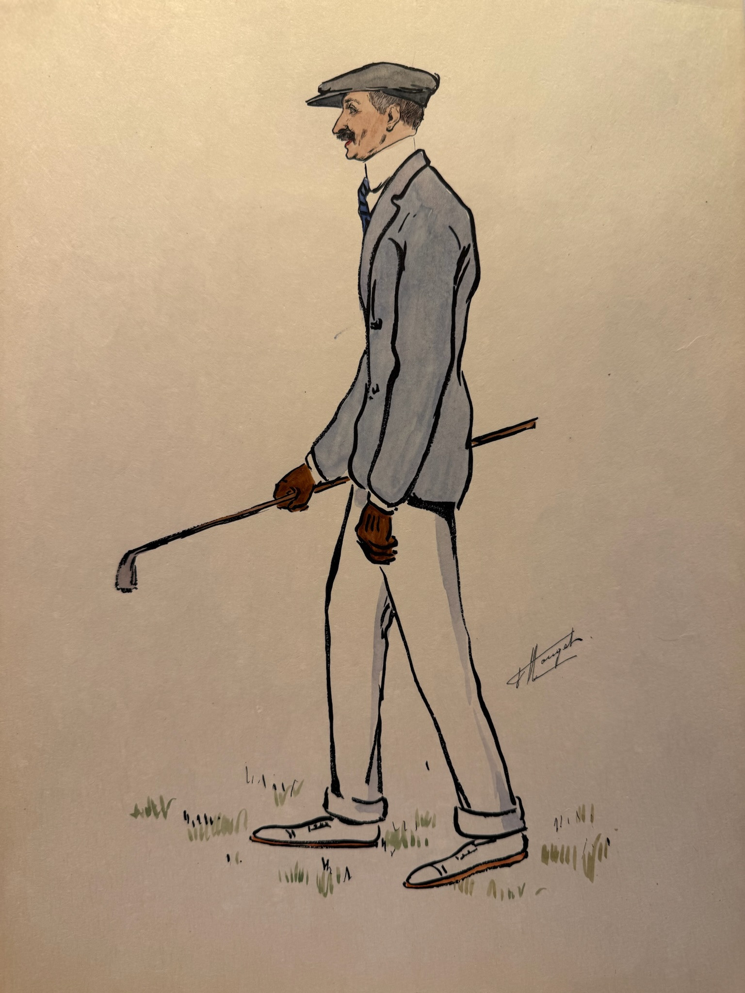 Dieux et demi-dieux, Fernand Houget (1863-1961), golf, lithographie vers 1910.