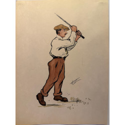 • Dieux et demi-dieux, Fernand Houget (1863-1961), golf, lithographie vers 1910.