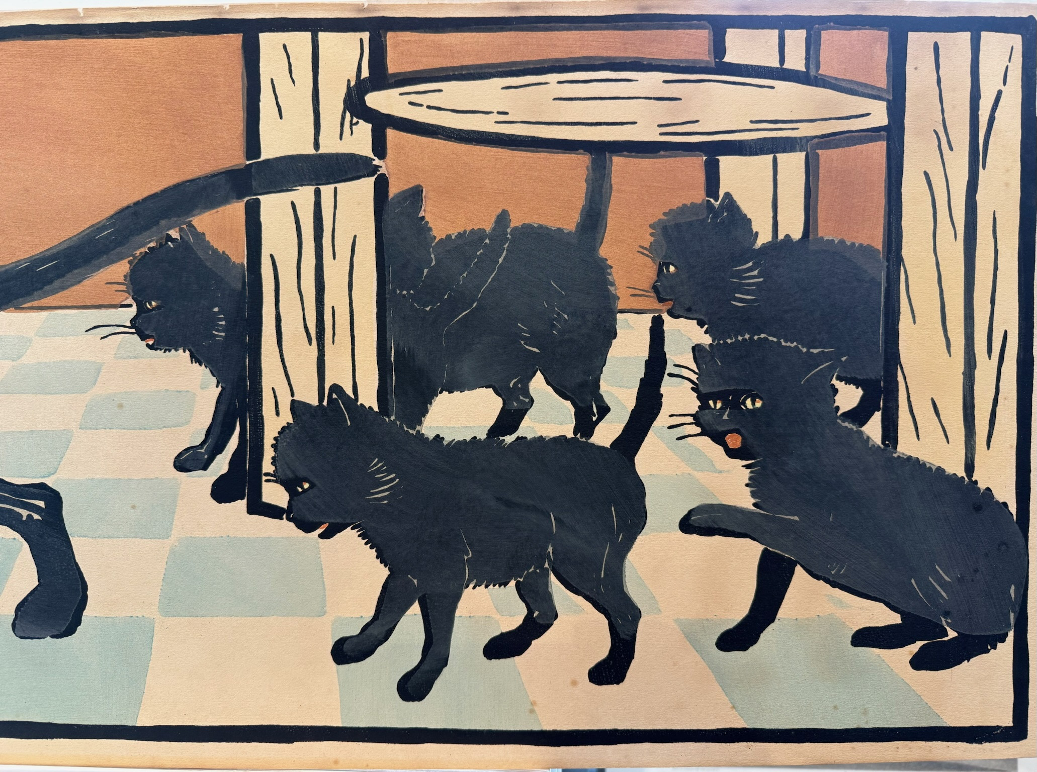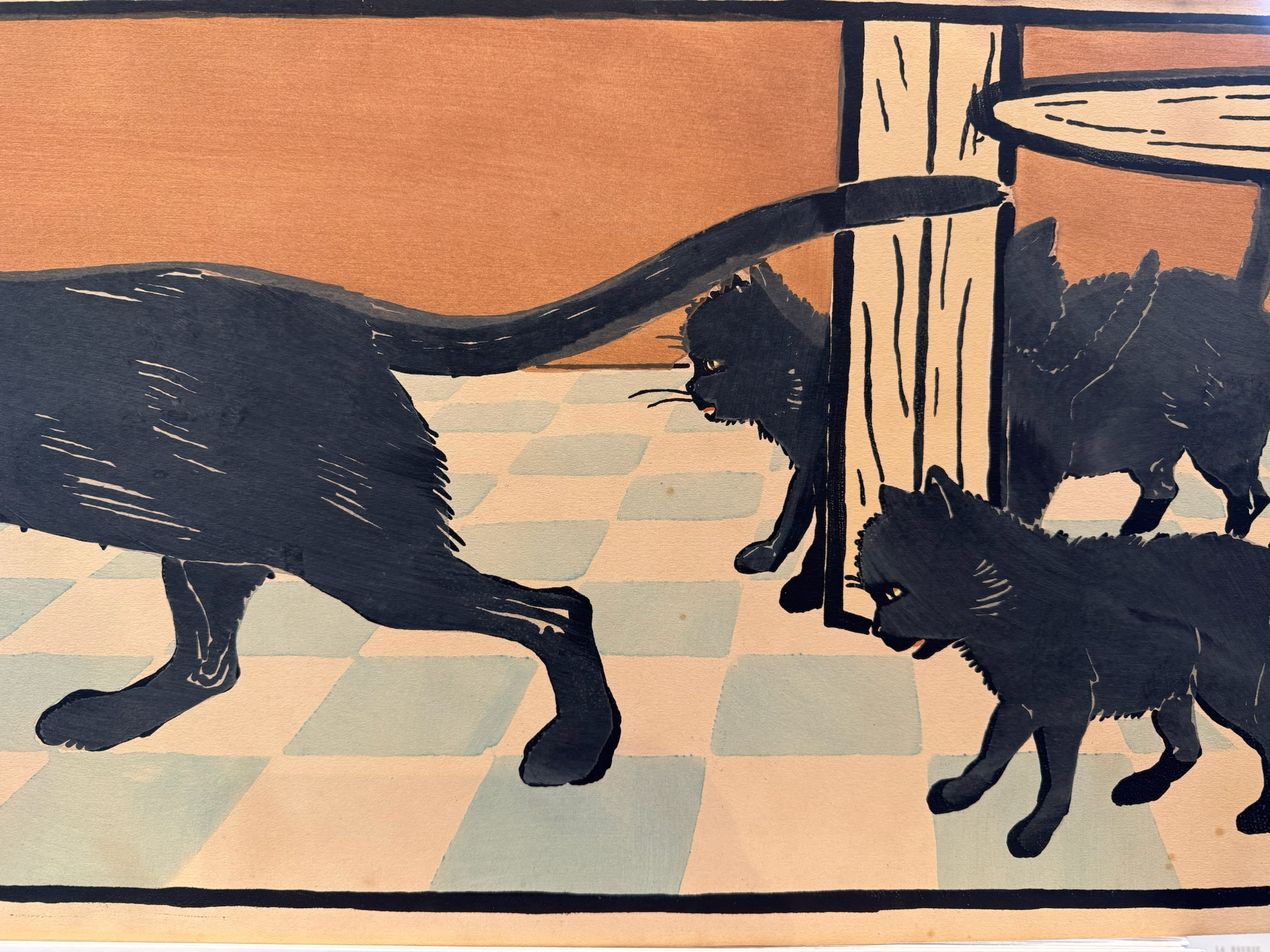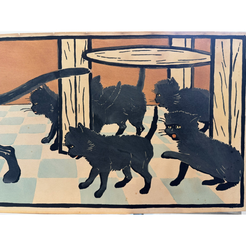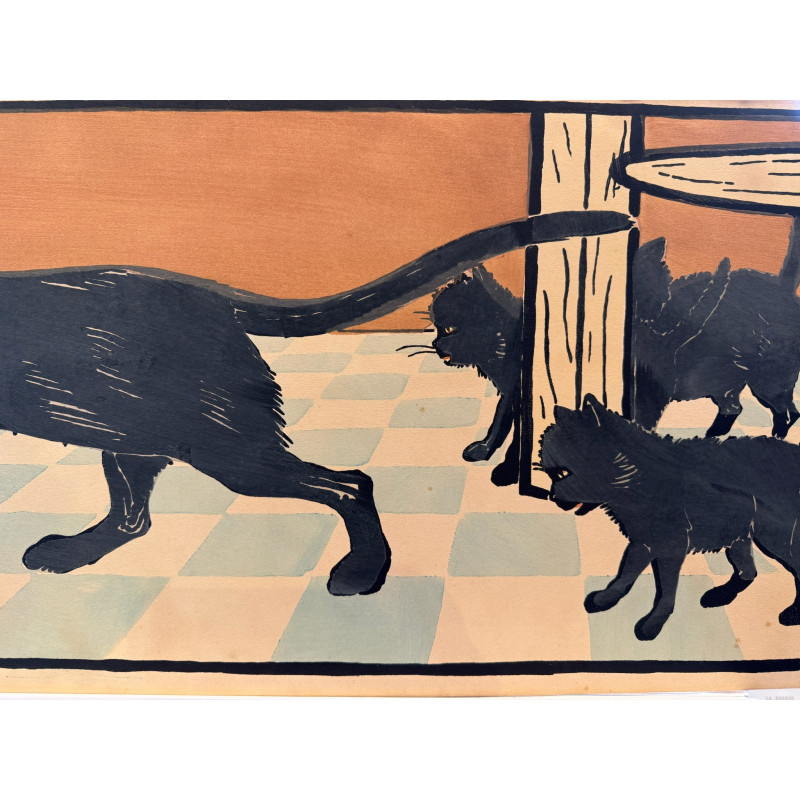 Très rare frise représentant la maman chat et ses petits partant chercher la soupe.