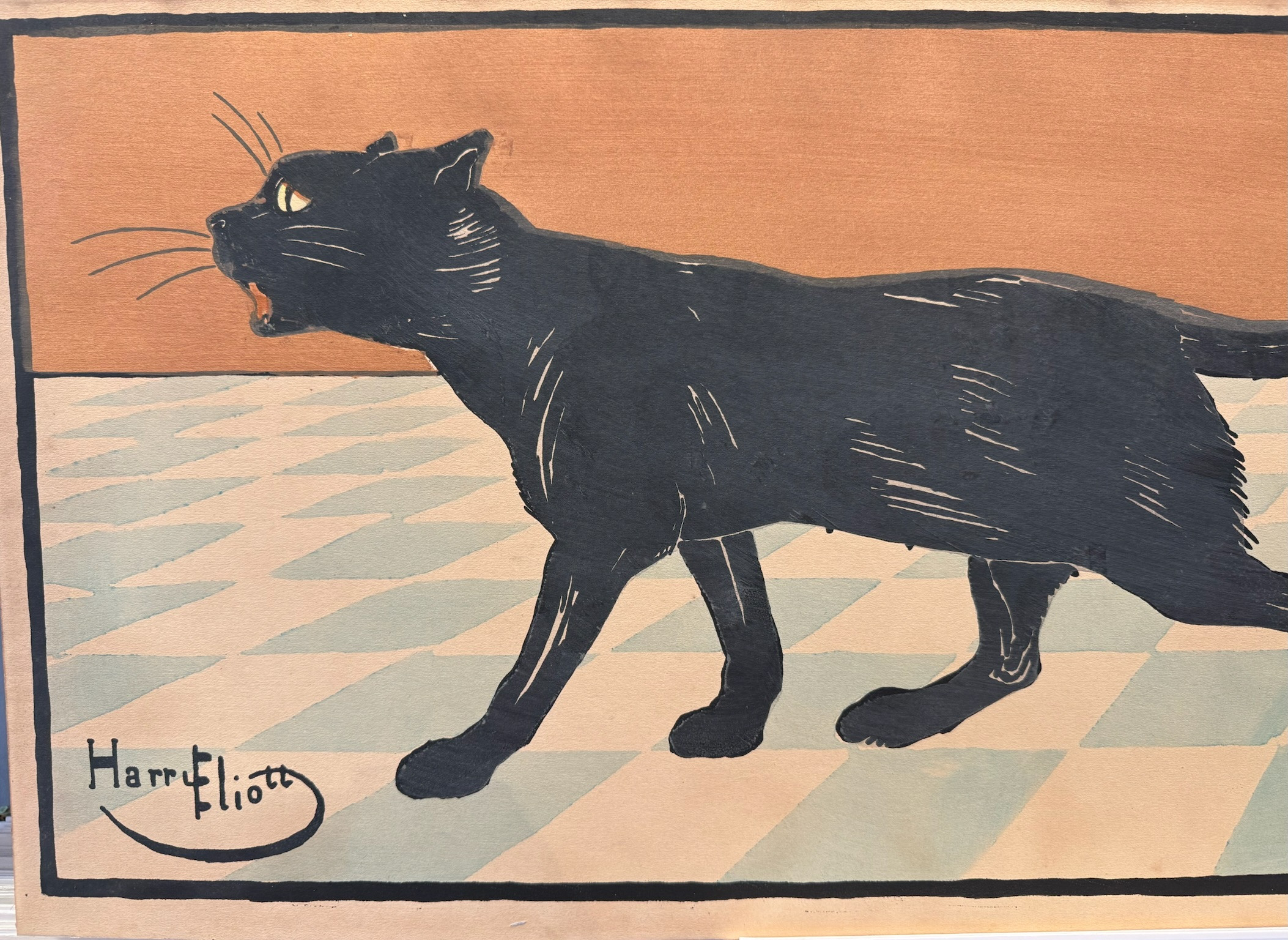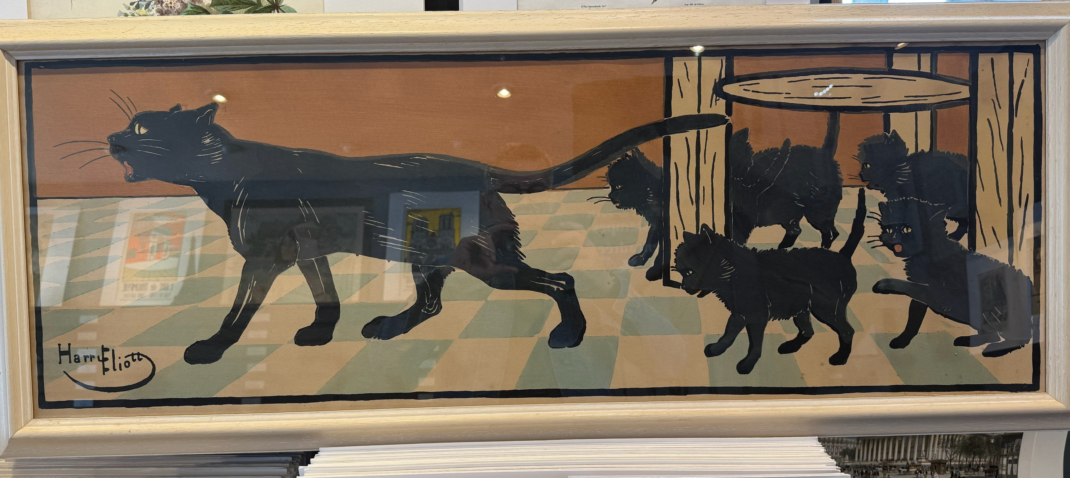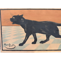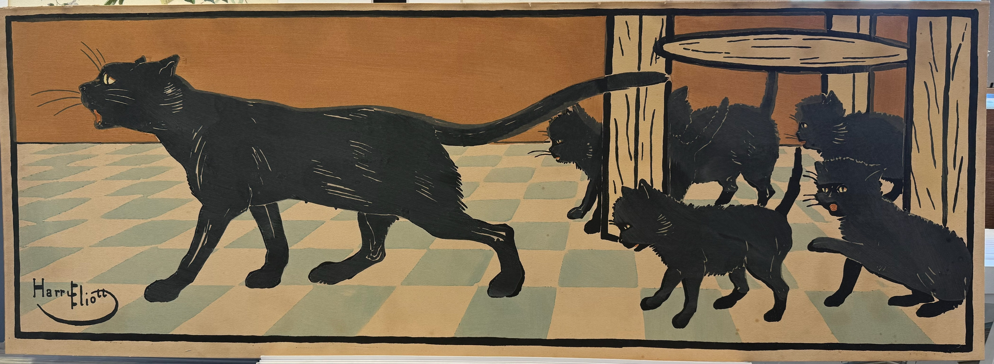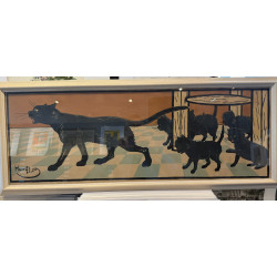 Très rare frise représentant la maman chat et ses petits partant chercher la soupe.