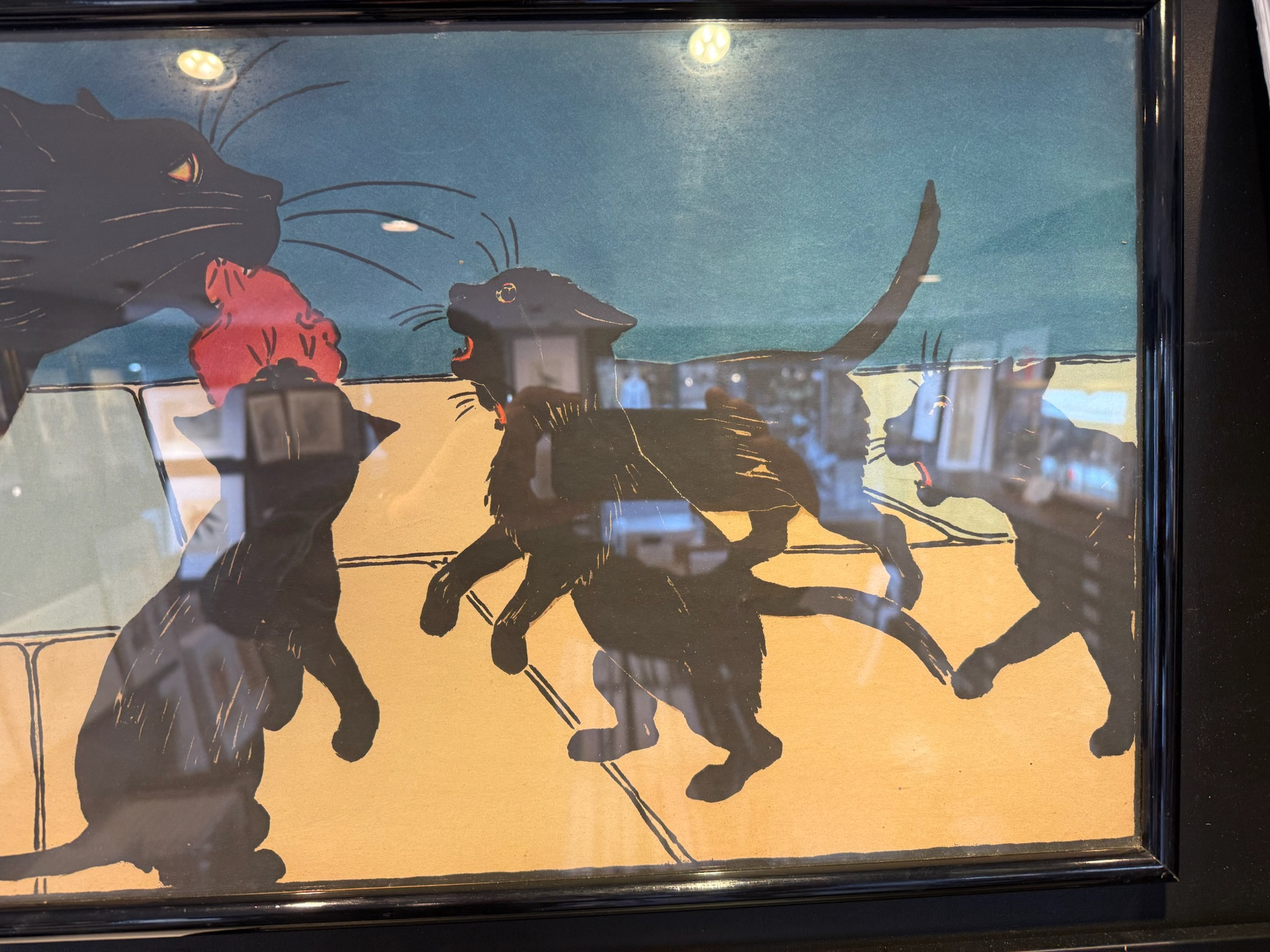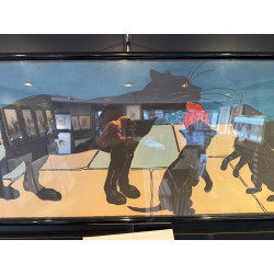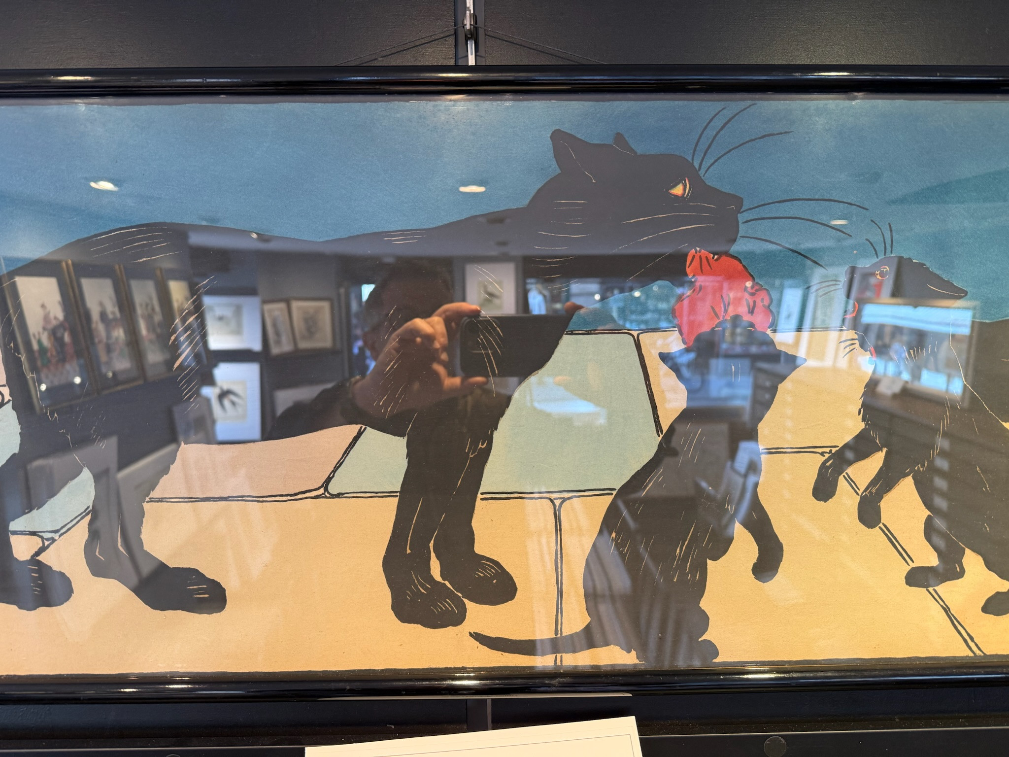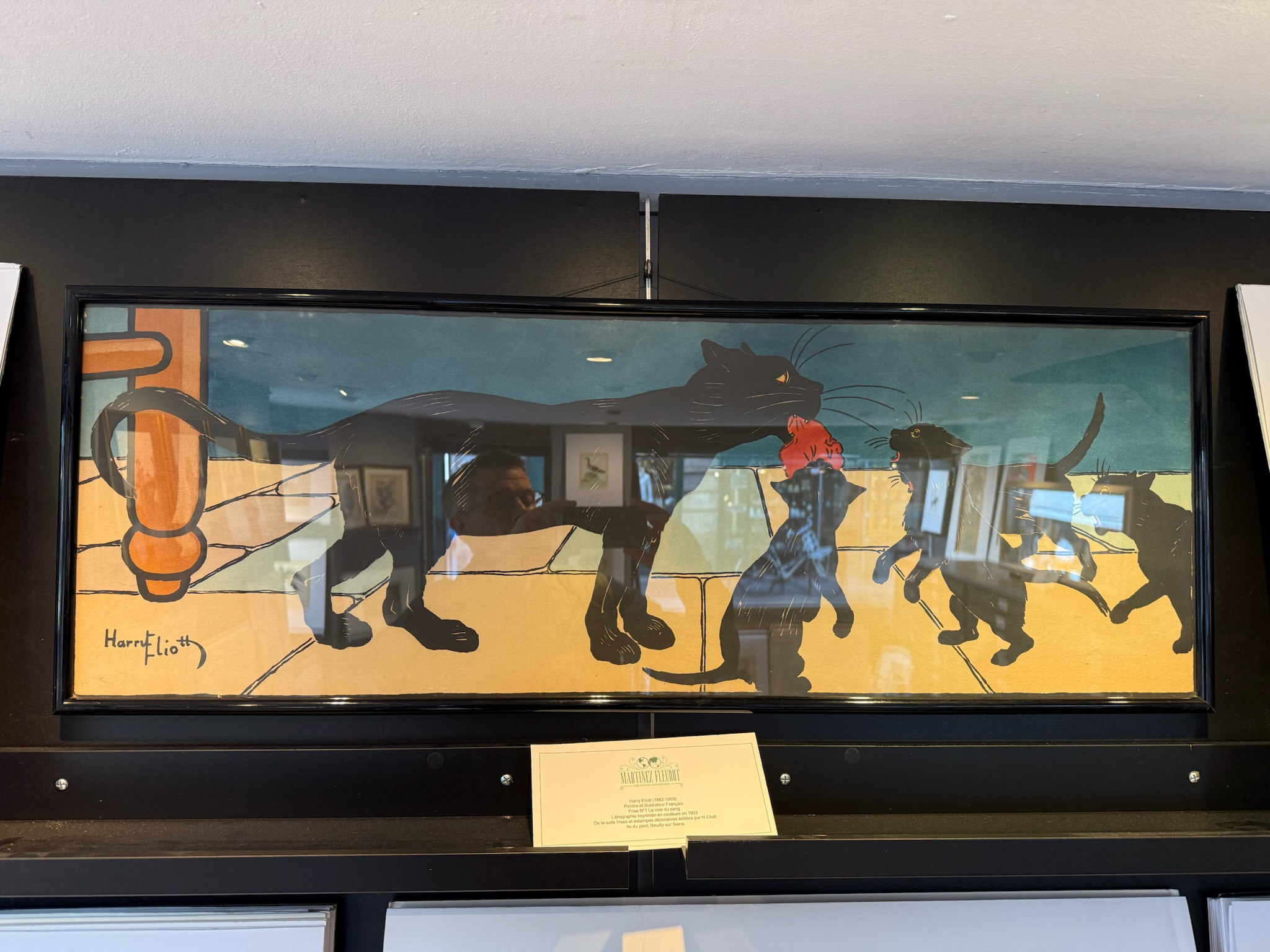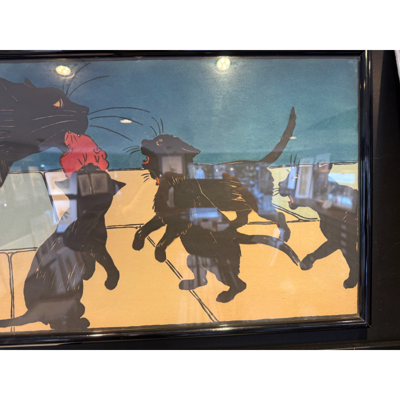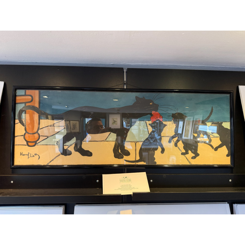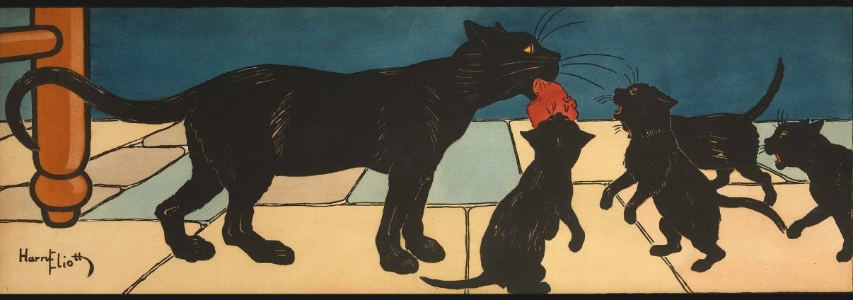 Très rare frise représentant la maman chat et ses petits ramenant le repas.