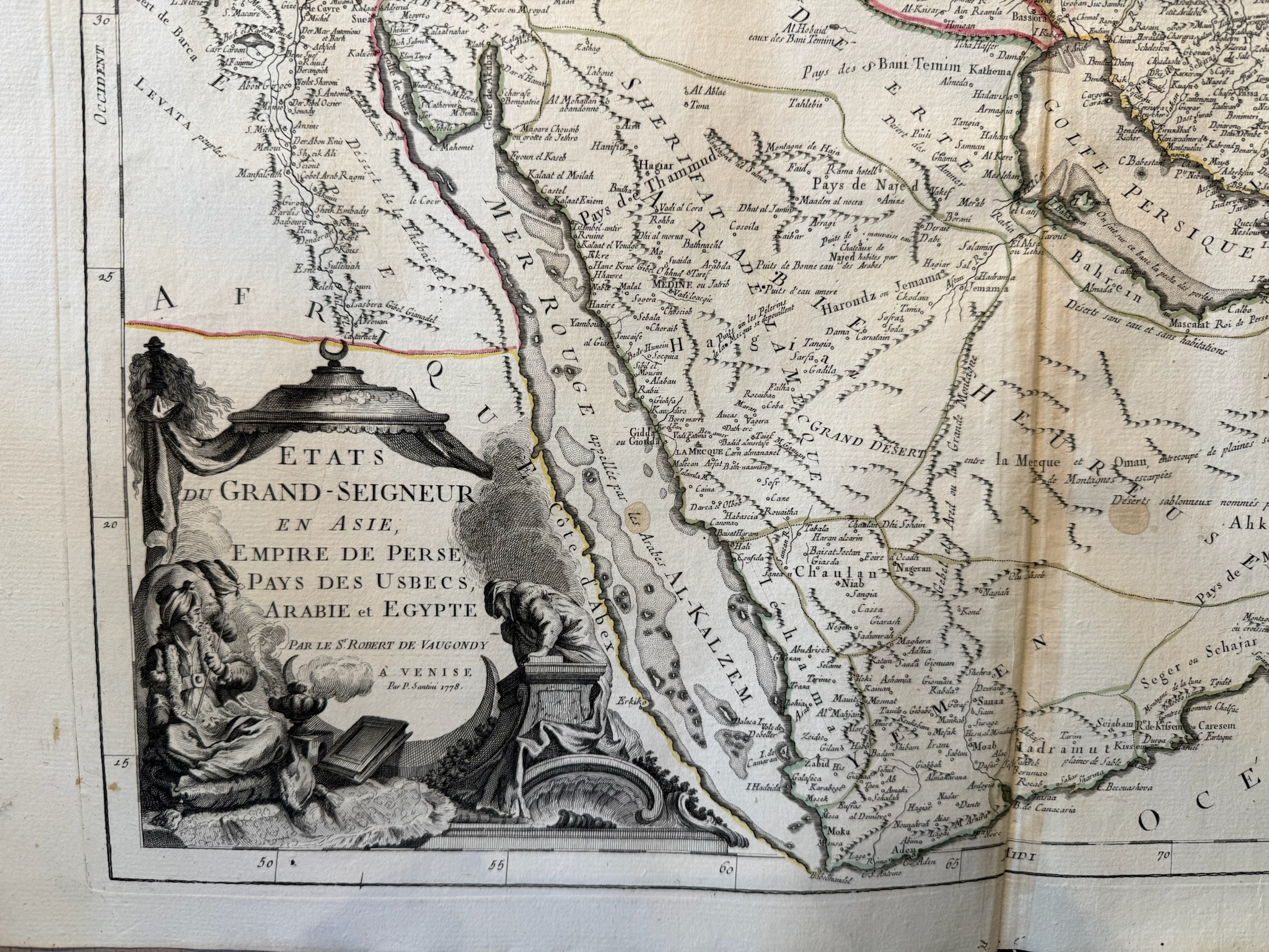 Etats du grand seigneur en Asie, Empire de Perse, pays des Usbecs, Arabie et Egypte, Vaugondy 1778.