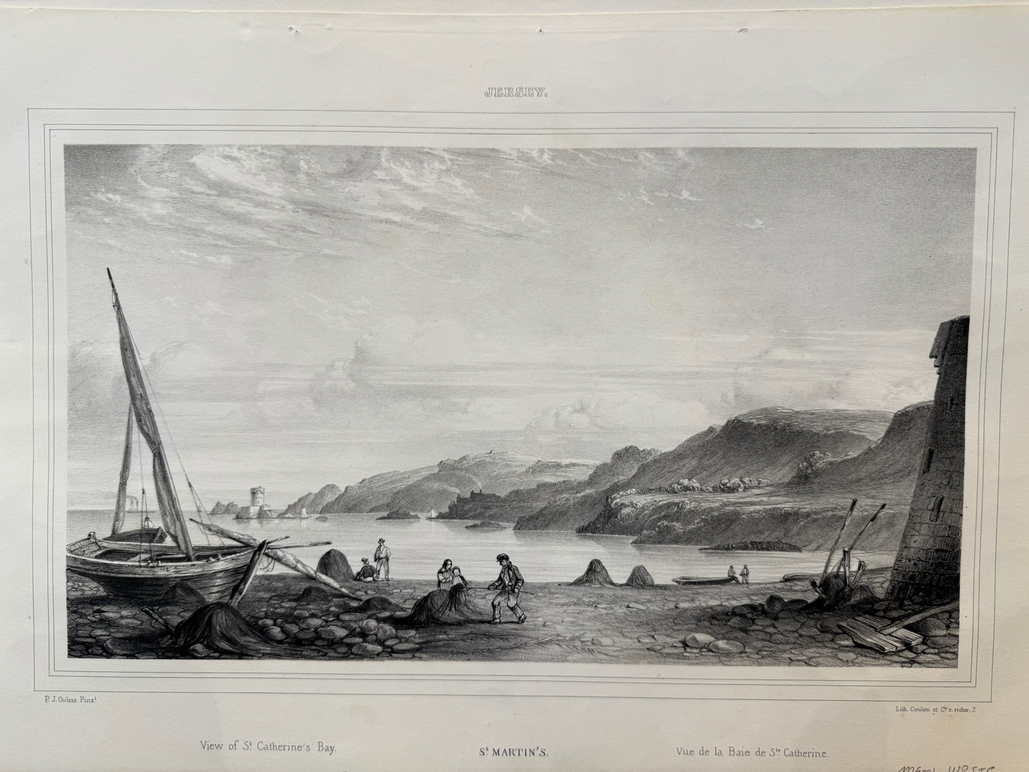Lithographie originale représentant St Martin, vue de baie de Ste Catherine