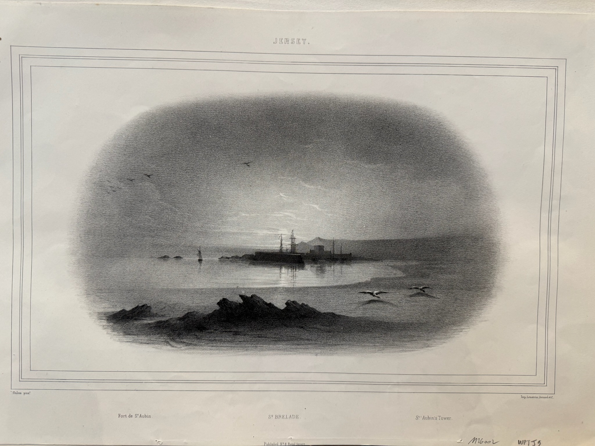 Lithographie originale représentant St Brelade, fort de St Aubin